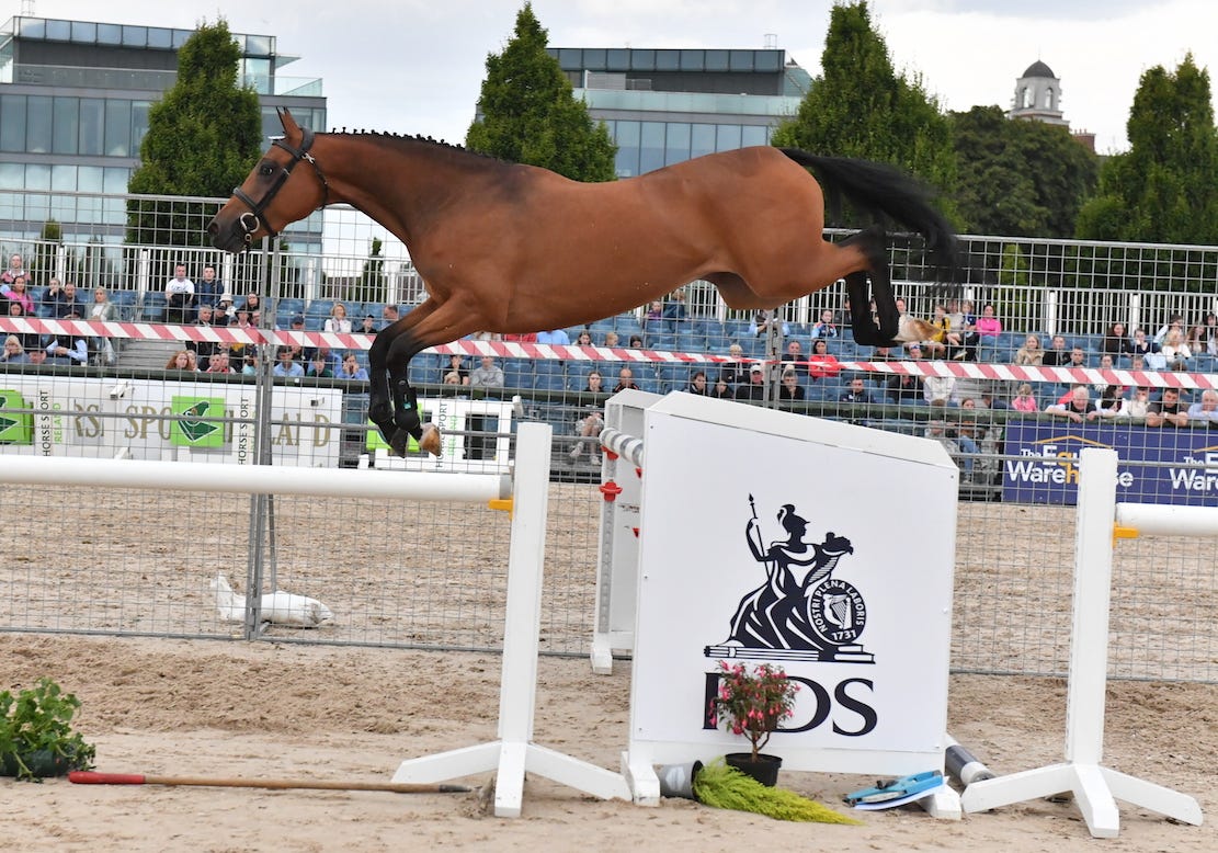 The ‘Seamus Hughes’ Perpetual Challenge Trophy (Cup 61), presented by the RDS, in memory of Mr Seamus Hughes and to be awarded for the Four-Year-Old 'Mo Chroi' National Show Jumping Championship: Gbbs Int Ltd’s BP Lady Masterpiece, Niamh McEvoy.