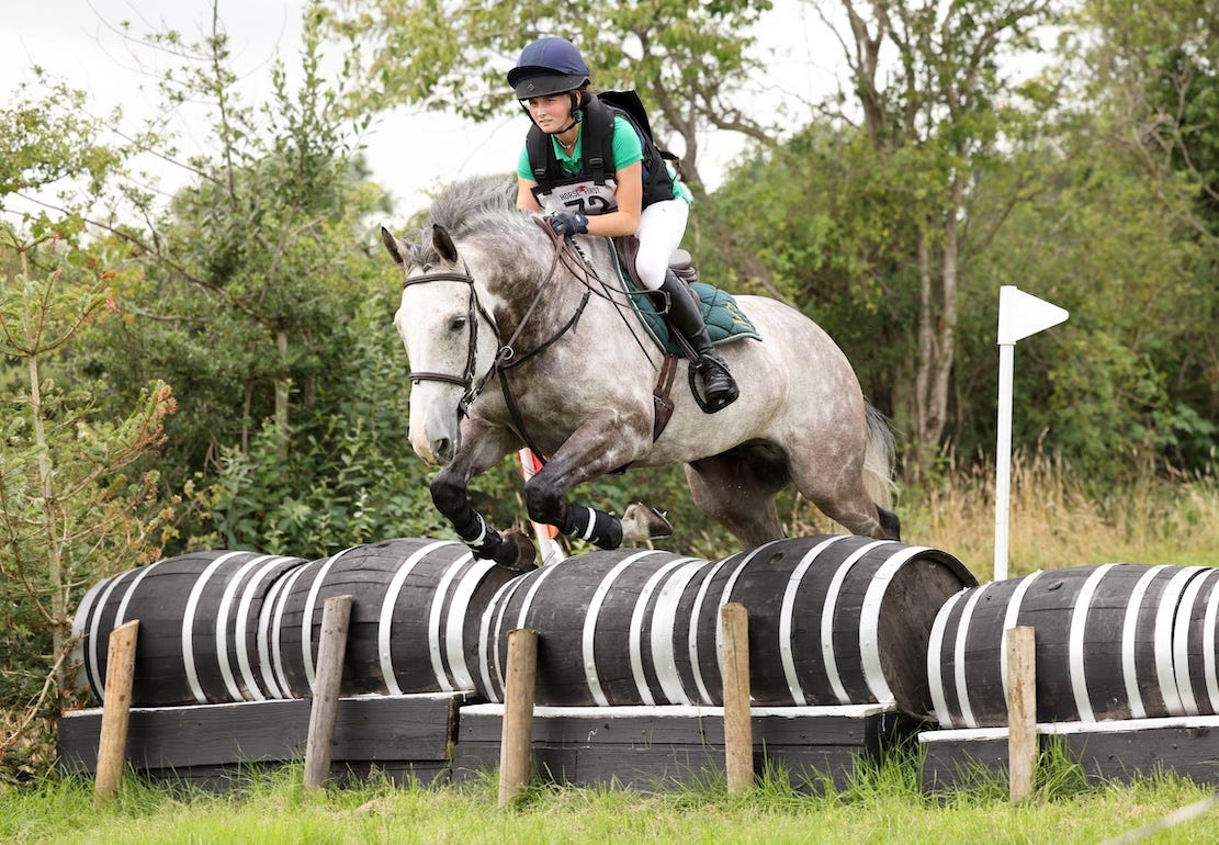 Grace McIlroy took the honours in the EI 80 class of seven, where two failed to finish. She moved down a level from last week with ‘Millennium Ace’, but proved that last week’s hiccup was very temporary. They finished on their dressage score of 27.0, two and a half points clear of Ella McCrory and ‘The Alders Bobby Dazzler’, who were competing at just their second event.